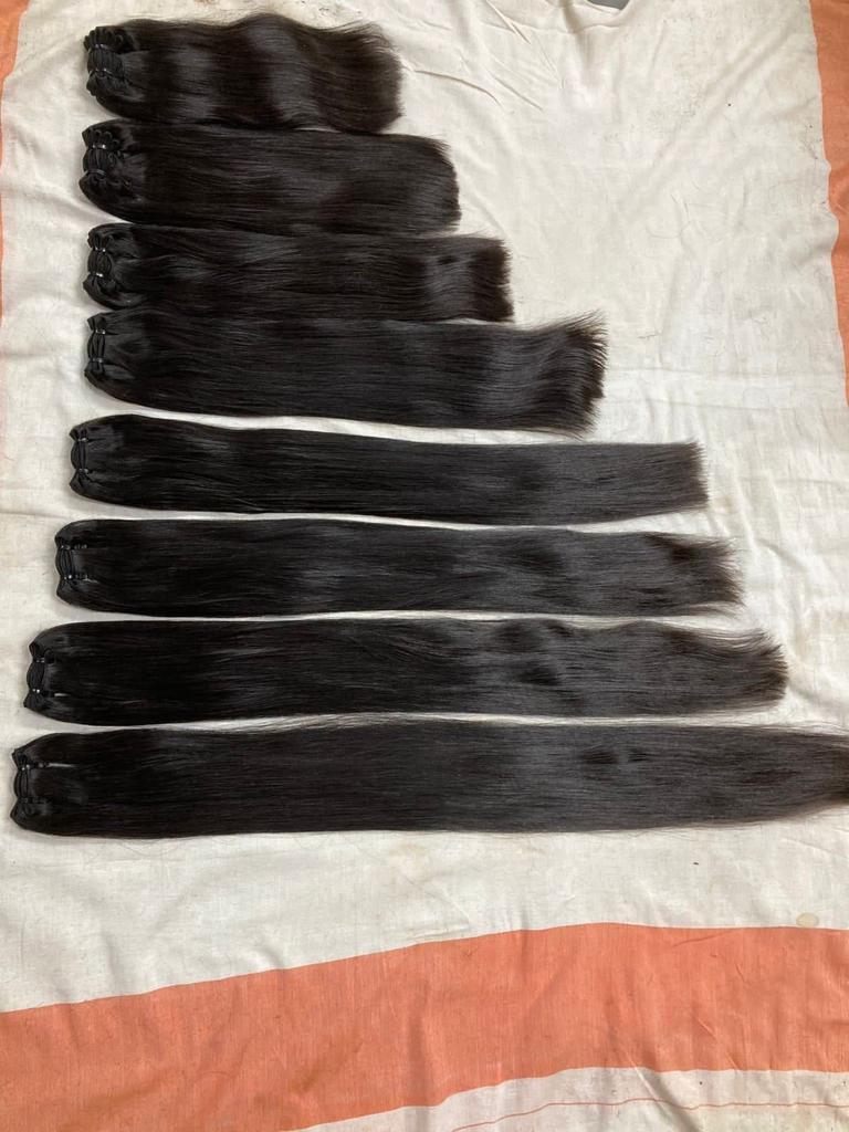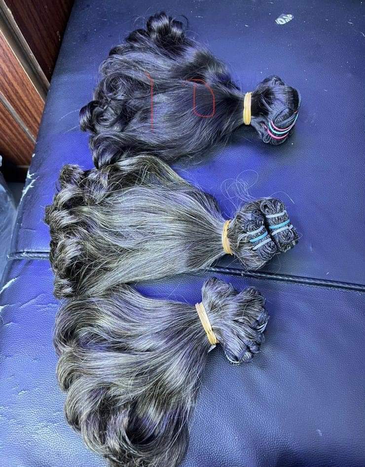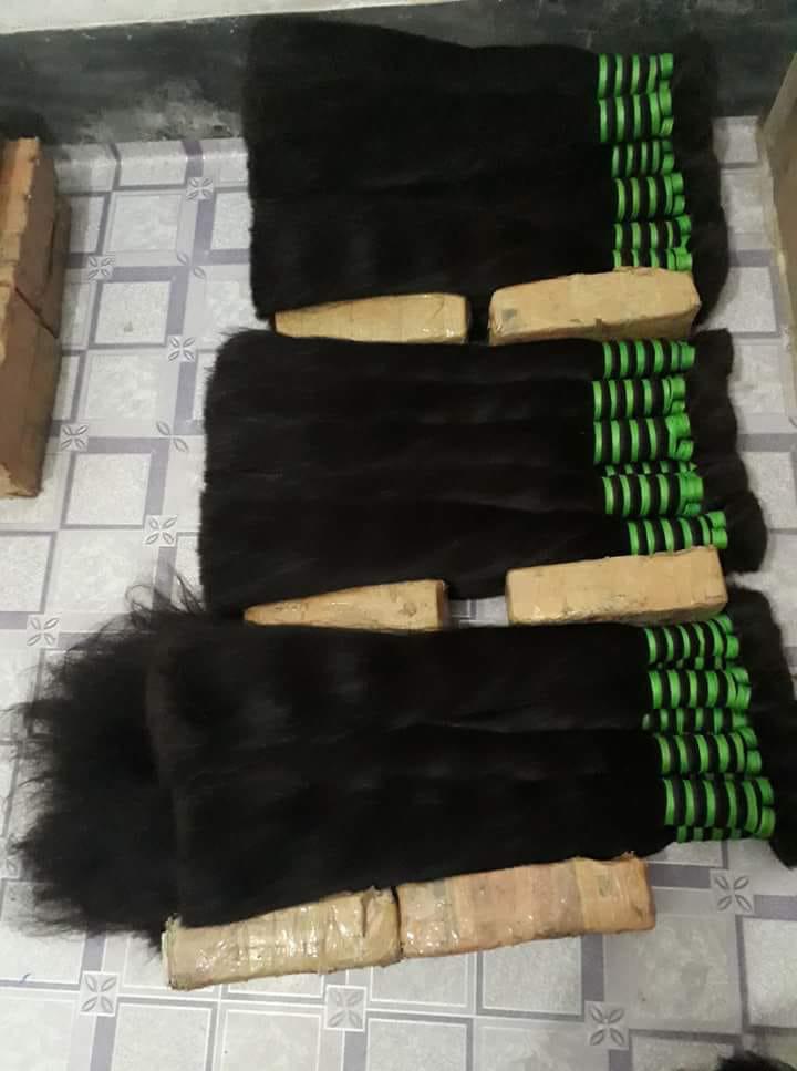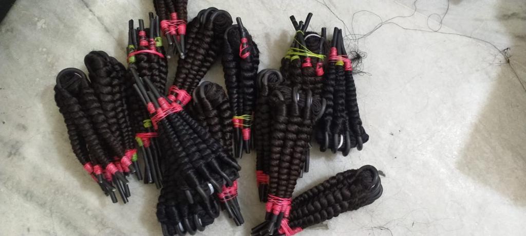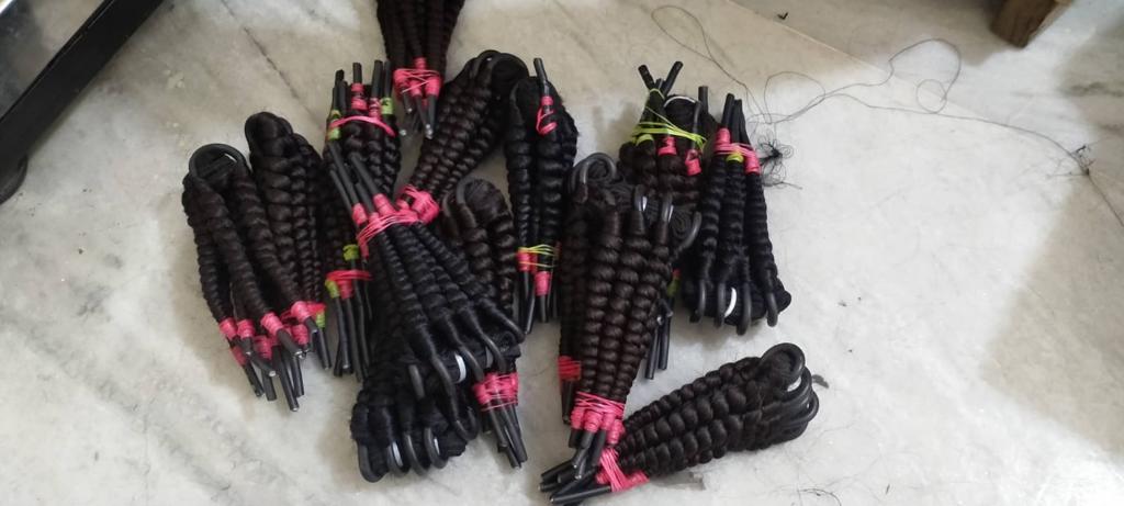 We are the wholesalers, Manufacturers, distributors, dealers, suppliers of Indian human hair having our own processing Indian hair factory in Chennai. We deal in Indian human hair Raw temple virgin hair in wholesale price machine weft hair extensions, grey hair extensions, natural curly,wavy & straight single drawn Raw Indian hair and hair extensions in all natural colours like black, off black brown and natural grey Hair dark, medium and white colours. Our Indian Human hair extensions are made by pure virgin Remy hair sourced from South Indian temples in our indian human hair factory directly and exported the same to various destinations like: UAE, U.K, AFRICA, SENEGAL, FRANCE, ITALY, LONDON, SOUTH AFRICA, SPAIN, AUSTRIA, RUSSIA, CONGO DR, CHINA and USA..